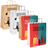 Lassen Sie hochwertige Papiertragetaschen mit Papierkordeln in vielen verschiedenen Größen bedrucken. Vom Flaschenformat von 10 x 40 x 10 cm über diverse mittelgroße Exemplare bis hin zum besonders großen Format (48 x 35 x 13 cm) finden Sie alles bei uns. Sämtliche Tragetaschen bestehen aus 100 g/m² starkem Kraftpapier in Weiß oder Braun. Die Farbkordeln gibt es in vielen Farben. Ihr Wunschmotiv realisieren wir 1/0-farbig, 4/0-farbig oder 4/0-farbig mit Weißdruck – stets in Top-Qualität.